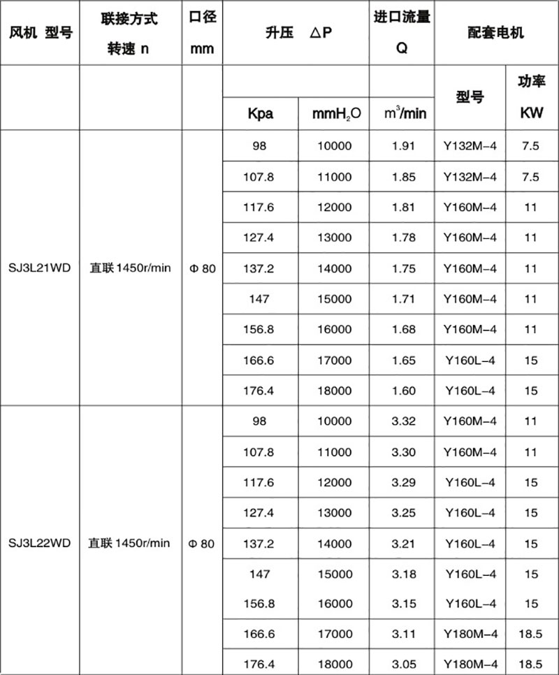 SI series of two-stage high pressure Roots blower is my company's latest design, combined with the technical experience of making Roots blower, and in the study of domestic and foreign counterparts on the basis of advanced technology, comprehensive absorption of the public long, self-developed an efficient, Energy saving, low noise two-stage Roots blower. It is equipped with two Roots blowers, as well as between the two fans with intercoolers, motors and other accessories (such as air filters, inlet and outlet muffler, flexible joints, safety valves, pressure gauges, check valves, etc.) Fan running the required accessories, and installed on an integral steel base. The motor at the same time drag two fans, on the one hand to make its structure more compact, on the other hand can make two fans of the power to do automatic balance, reduce the matching motor power capacity. The intercooler reduces the temperature of the gas compressed by a fan so that its overall compression process is closer to isothermal compression. Because of its volumetric efficiency, compression and effort, so as to achieve the purpose of energy conservation.